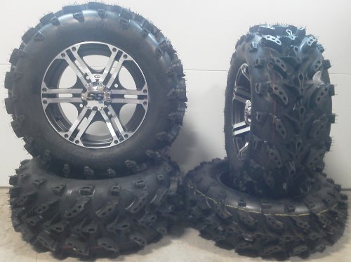 Bundle - 9 Items: ITP SS212 14" Wheels Machined 27" Swamp Lite Tires [4x110 Bolt Pattern 10mmx1.25 Lug Kit]