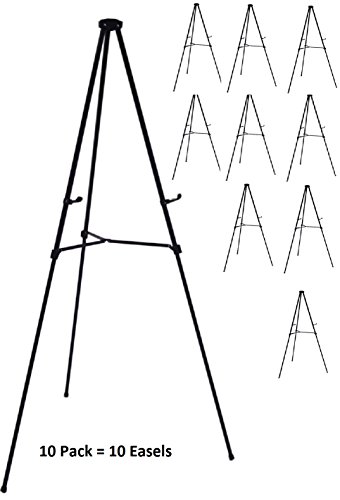 Pack of 10 Lightweight Aluminum Telescoping Display Easel, Black (10 Pack)