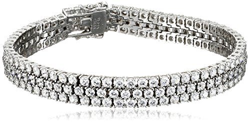 Platinum-Plated Sterling Silver Swarovski Zirconia Three-Row Tennis Bracelet, 7¼” length