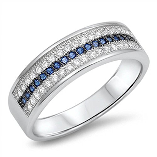 Simulated Blue Sapphire & Cz Wide Band .925 Sterling Silver Ring Sizes 5-10