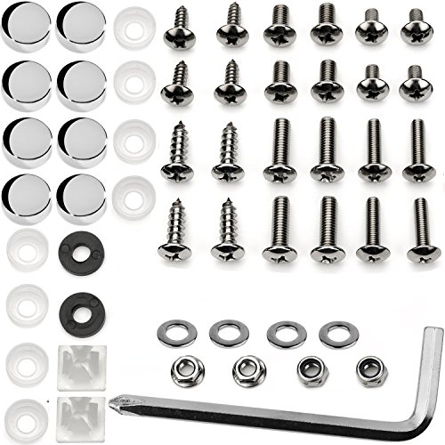 LFPartS Stainless Steel Rust Resistant License Plate Frame Screws Fasteners Ultimate Kit Domestic Import +(Chrome Screw Caps)