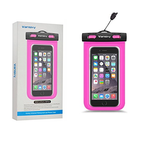 Vansky Universal Waterproof Case Dry Bag for iPhone 6, 6 Plus, 6s, 5, 5s, 4, Samsung Galaxy S6 and S6 Edge S5 S4, Samsung Note 3,2; IPX8 Certified to 100 Feet (Pink)
