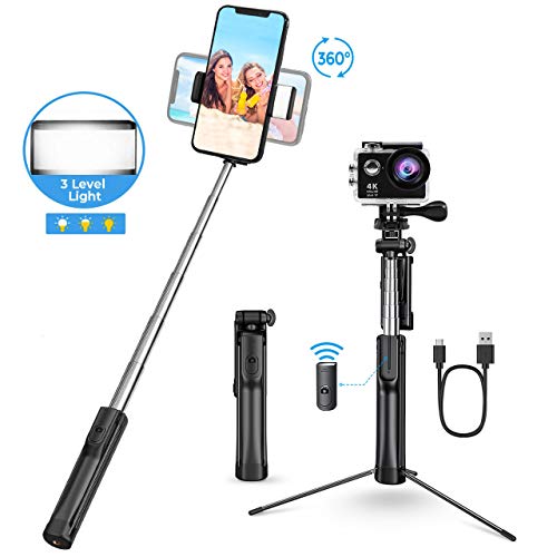 Selfie Stick Tripod with LED, Bluetooth Detachable Remote, Seneo All In One Portable Extendable Selfie Stick Compatible with iPhone Xs MAX/XR/XS/X/8/8P/7/7P/6s, Galaxy S10/S9/S8, Gopro/Small Camera