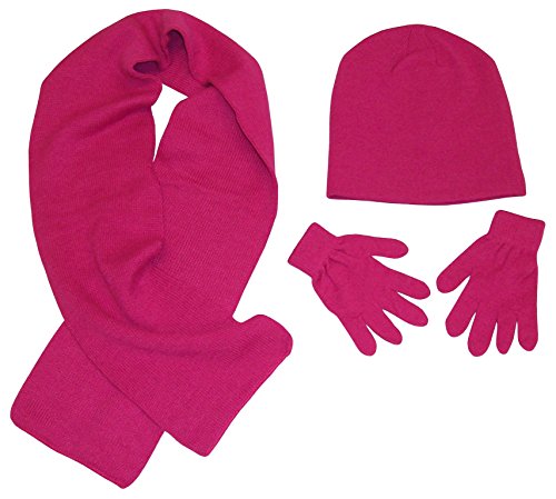 N'Ice Caps Kids Unisex Knitted Hat/Scarf/Magic Glove Set (4-12yrs, Fuchsia)