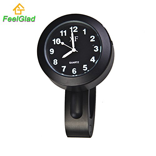 FeelGlad (TM) Universal Waterproof Motorcycle Handlebar Black Dial Clock Noctilucent 7/8" & 1" Handlebar Mount for Yamaha Kawasaki Honda Suzuki Harley Davidson - Black
