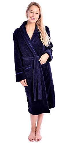 Wanted Women's Luxurious Velvet Soft Waffle Bathrobe with Tie Closure Navy Large/X-Large