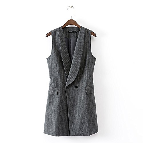 Women's Long Boyfriend Grey Vest Suit Waistcoat Blazer Jacket (ASIAN L)