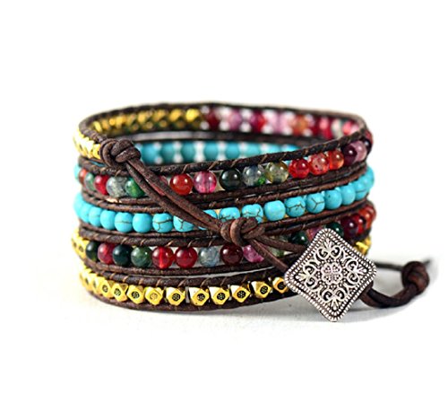 Carolyn Jane's Jewelry Leather Wrap Bracelet with Synthetic-Turquoise and Mixed Colorful Beads
