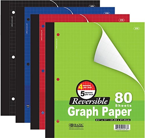 3 Pk, Bazic 4"/5" Reversible Graph Paper, 8 1/2" X 11", 80 Sheets