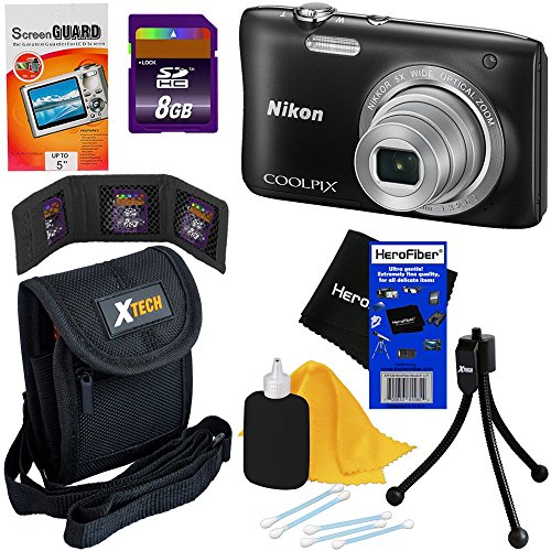 HeroFiber Nikon Coolpix S2900 20.1 MP Point and Shoot Digital Camera with 5X Optical Zoom and 720p HD Video (Black) + 7pc Bundle 8GB Accessory Kit w Ultra Gentle Cleaning Cloth