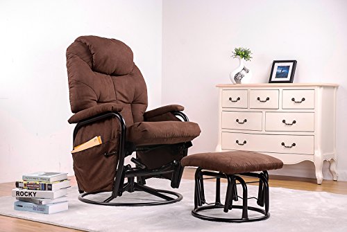 Merax® Home Furniture Ergonomic Suede Fabric Swivel Glider Recliner Rocking Chair and Ottoman Set Glider Rocker (Chocolate)