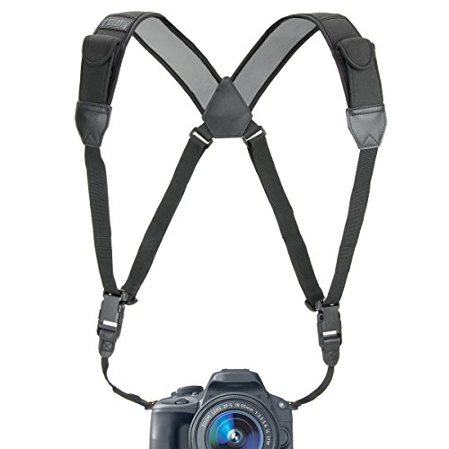 USA Gear DSLR Camera Strap Chest Harness with Quick Release Buckles, Black Neoprene Pattern and Accessory Pockets - Compatible with Canon, Nikon, Sony and More Point and Shoot, Mirrorless Cameras