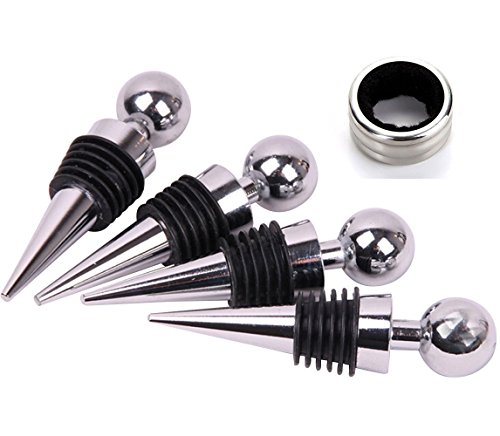 Bekith Zinc Alloy Bar Tools Ball Design Wine Bottle Stoppers, Drop Ring, Set of 5