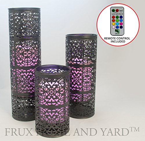 Frux Home and Yard 3 Piece Metal Lanterns with Flameless Pillar Candles and Remote Control