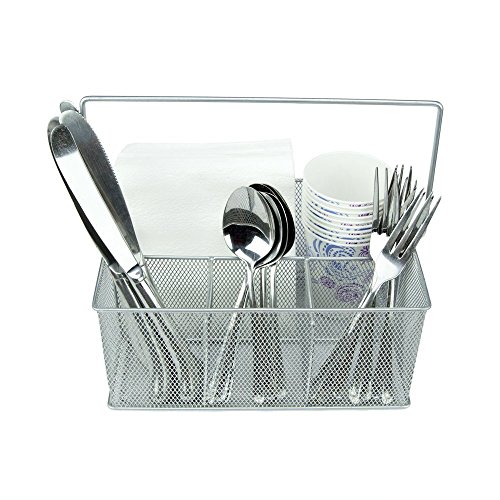 KitchenPlus Condiment and Silverware Caddy, Silver