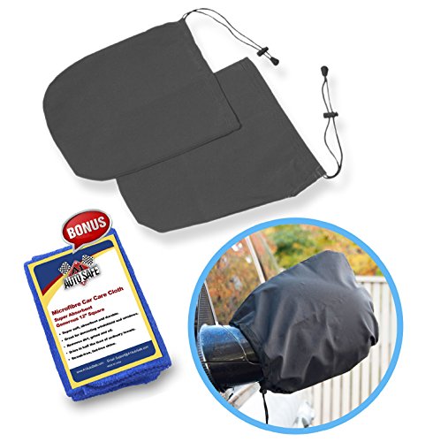SnowOFF Car Side Mirror Snow Covers Set - Protect Auto Exterior Rear View Mirrors from Snow, Ice & Frost - BONUS Demist Cloth - Automotive Door Armor - Fit Cars, CRVs some SUVs - Like Windshield Cover