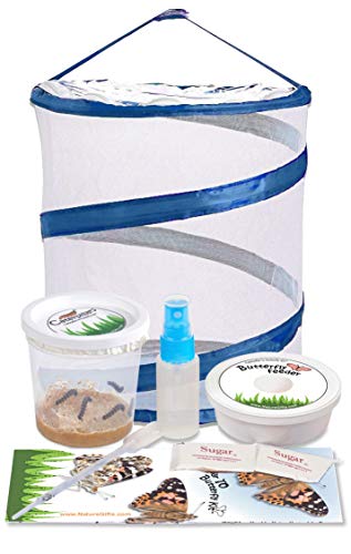 Nature Gift Store Live Butterfly Kit: Shipped with 5 Painted Lady Caterpillars Now- Pop Up Cage