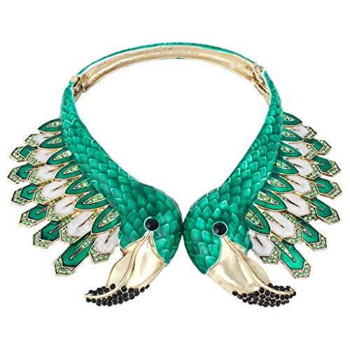 EVER FAITH Gold-Tone Austrian Crystal Enamel Vintage Style 2 Flamingo Statement Choker Necklace Yellow