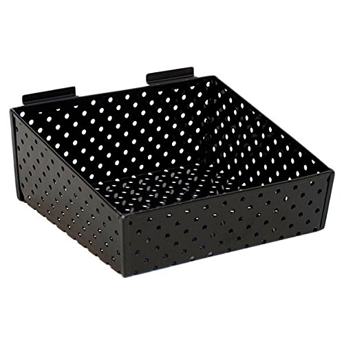 KC Store Fixtures A02026 Slatwall Basket, 12" W x 10" D x 3" H to 5" H Back Perforated Metal, Black (Pack of 2)