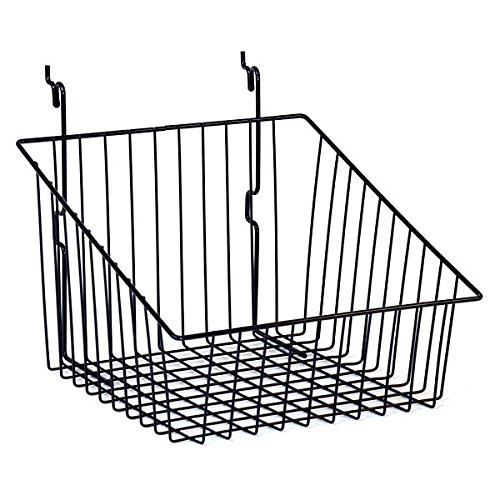 KC Store Fixtures A03036 Sloping Basket Fits Slatwall, Grid, Pegboard, 12" W x 12" D x 8" H Back x 4" H Front, Black (Pack of 6)