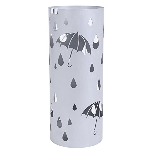 SONGMICS Metal Umbrella Stand Rack Silver Gray Umbrella Holder Home Office Decor with Drip Tray and Hooks ULUC23S