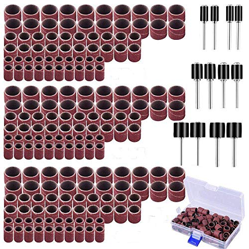 SPTA 3/8" 1/4" 1/2" Sanding Bands Drums Sleeves 60 120 320 Mix Grits With 1/8"(3mm) Shank Mandrel For Proxxon Dremel Rotary Tools Pack of 319Pcs
