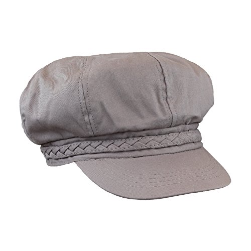 Lightweight Ivy Newsboy Cabbie Hat w/ Braided Trim, Irish Fiddler Cap, Grey, One Size