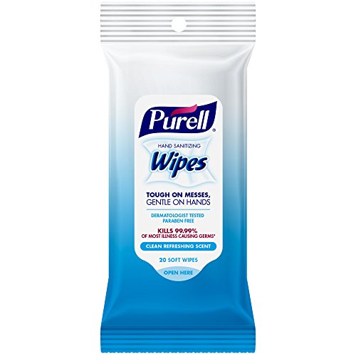 PURELL Hand Sanitizing Wipes, Clean Refreshing Scent, 20 Count Non-Alcohol Sanitizing Wipes Resealable Travel Pack (Pack of 6) – 9124-09-EC