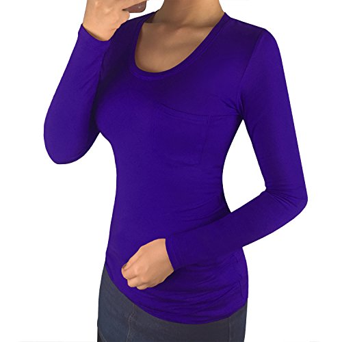 TWINTH Womens Long Sleelve Scoop Neck Basic Knit Top Royalblue Medium