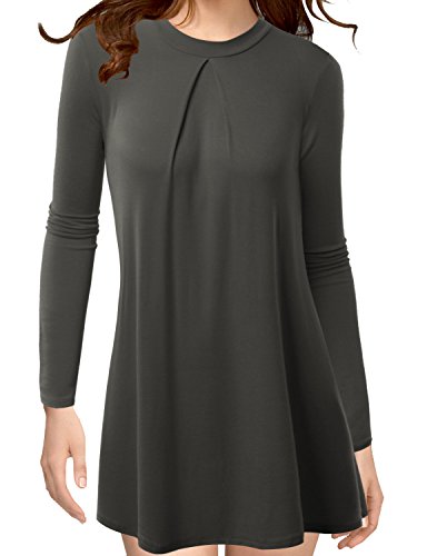 TWINTH Womens Long Sleeleve High Neck Pleats Detail Tunic Top Blue Medium