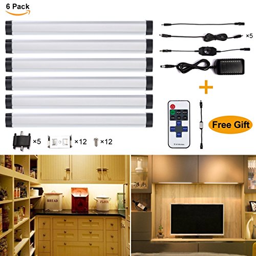 S&G Dimmable LED Under Cabinet Light Ultra Thin Under Counter Lighting 6pcs Puck Lights for Closet, 24W 1800 Lumens with UL-Listed Power Adapter