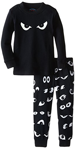 Sara's Prints Big Boys' Long John Pajama's, Black with Eyes, 10
