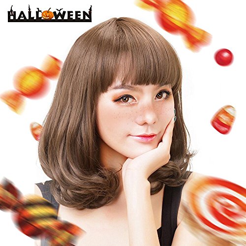 Rabbitgoo Halloween Medium Wig Hair Light Brown Wigs With Bang Curly Bob Wigs
