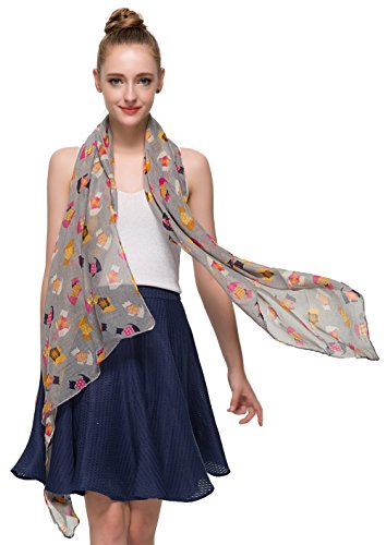 HUAN XUN Soft Lightweight Scottie Dog Animal Print Scarf Shawl with HUAN XUN Brand Gift Bag, Grey