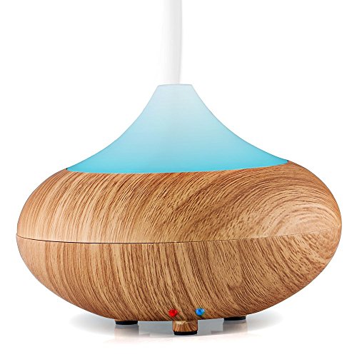 160ml Aroma Essential Oil Diffuser Wood Grain Ultrasonic Cool Mist Humidifier with 7 Color Changing LED Lights Adjustable Mist Mode, Waterless Auto Shut-off for Spa Home Office(AD-402)