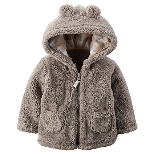 Carters Unisex Baby Hooded Sherpa Jacket (6 Months, Brown)