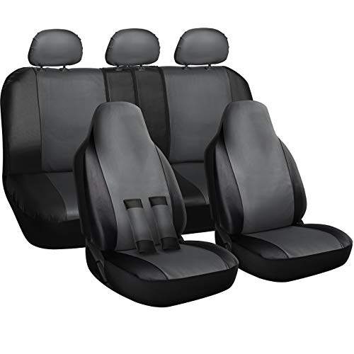 OxGord Faux Leather Gray/Black Car Seat Covers Set - Airbag - Universal Fit for Car, Truck, SUV - Steering Wheel Cover