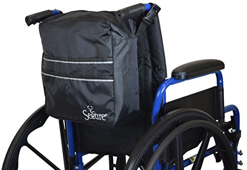 Secure WBPR-4B Mobility Storage Bag with Night Safety Reflector, Black - 4 Pocket Pouch Accessory for Wheelchairs, Walkers, Rollator, Electric Scooter 12.5" x 12.5" x 4.5"