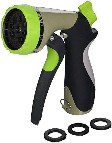 Garden Hose Spray Nozzle - 8 Pattern Metal Watering Nozzle - High Pressure Hand Sprayer with 3 Washers - Ideal for Washing Dogs, Pets and Car Wash - HOMWE