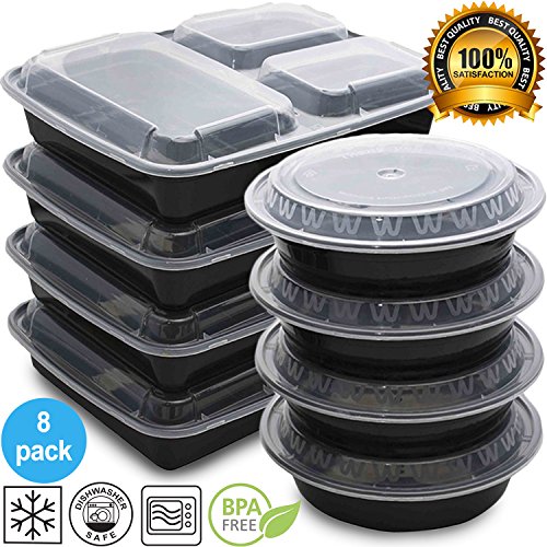 Mixed Meal Prep Containers Set - Bento Lunch Boxes / Restaurant Food Storage - Portion Control - 8pk