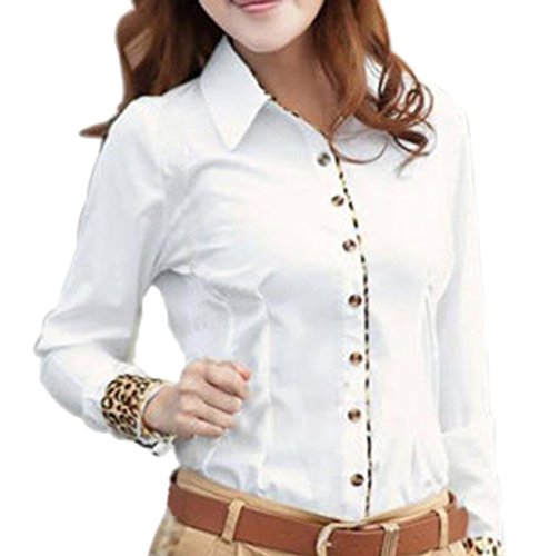 Zonars Women Summer Career Lady Black/White Leopard T Shirt Blouse Tops White, Medium