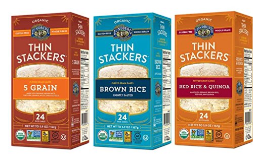 Lundberg Organic Gluten-Free Thin Stackers 3 Flavor Variety Bundle: (1) 5 Grain Thin Stackers, (1) Red Rice & Quinoa Thin Stackers, and (1) Brown Rice Lightly Salted Thin Stackers, 5.9 Oz Ea (3 Total)