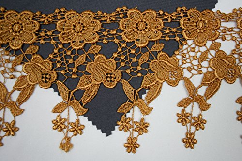 Altotux 4.5" 12 Color Dangling Embroidered Floral Venice Lace Trim Guipure By Yd (Gold)