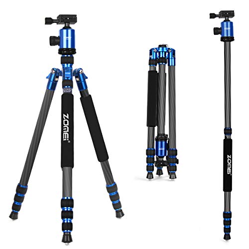 ZoMei Carbon Fiber Tripod,Tripod for Camera,66.5" Camera Tripod Monopod with 360 Degree Ball Head and Quick Release Plate,Load up to 33 pounds for DSLR Cameras (Blue)
