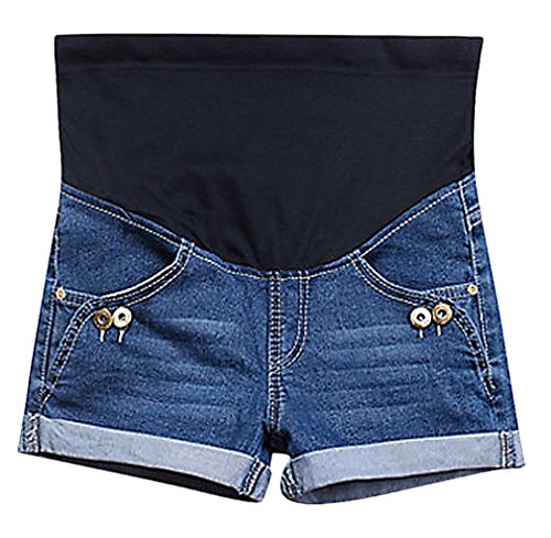 MTRNTY Women's Maternity Elastic Adjustable Waist Denim Shorts Blue Jeans Button, Large