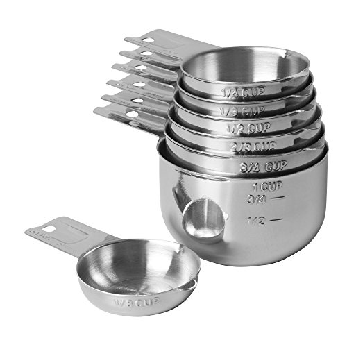Measuring Cups 7 Piece with New 1/8 cup (Coffee Scoop) by KitchenMade-Stainless Steel-Nesting set.