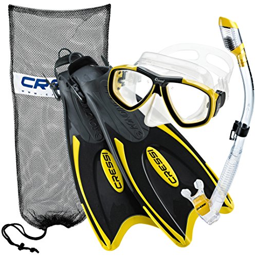 Cressi Palau Long Fins, Focus Mask, Dry Snorkel, Snorkeling Gear Package