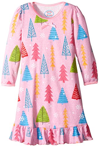 Sara's Prints Little Girls' Puffed Sleeve Nightgown, Holiday Trees, 5