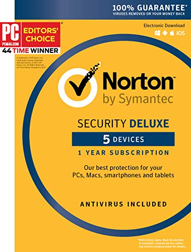 Symantec Norton Security Deluxe – 5 Devices – 1 Year Subscription [PC/Mac/Mobile Key Card]