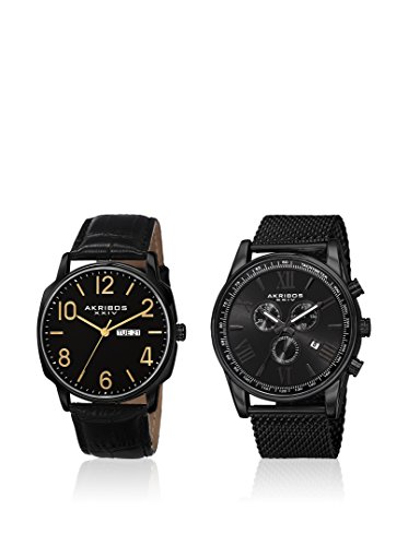 Akribos XXIV Men's AK885SSB Quartz Multifunction Dual Watch Box Set